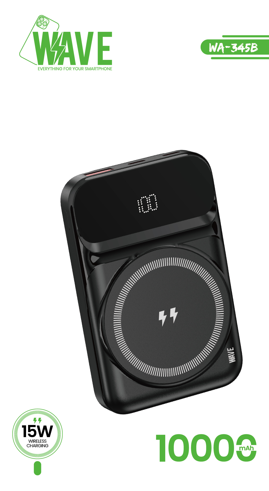 Wave WA-345B MagSafe Wireless Powerbank 15W – 10.000 mAh (Black)